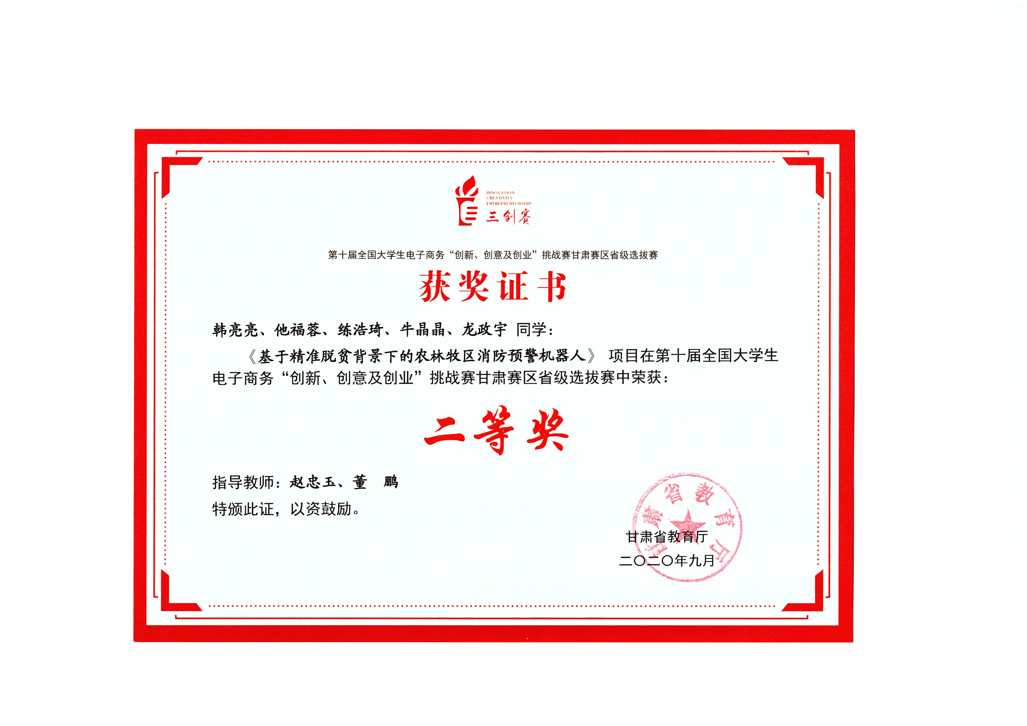 第十屆全國大學(xué)生電子商務(wù)“創(chuàng)新、創(chuàng)意及創(chuàng)業(yè)挑戰(zhàn)賽甘肅省賽區(qū)省級選拔賽《基于精準(zhǔn)脫貧背景下的農(nóng)林牧區(qū)消防預(yù)警機(jī)器人》