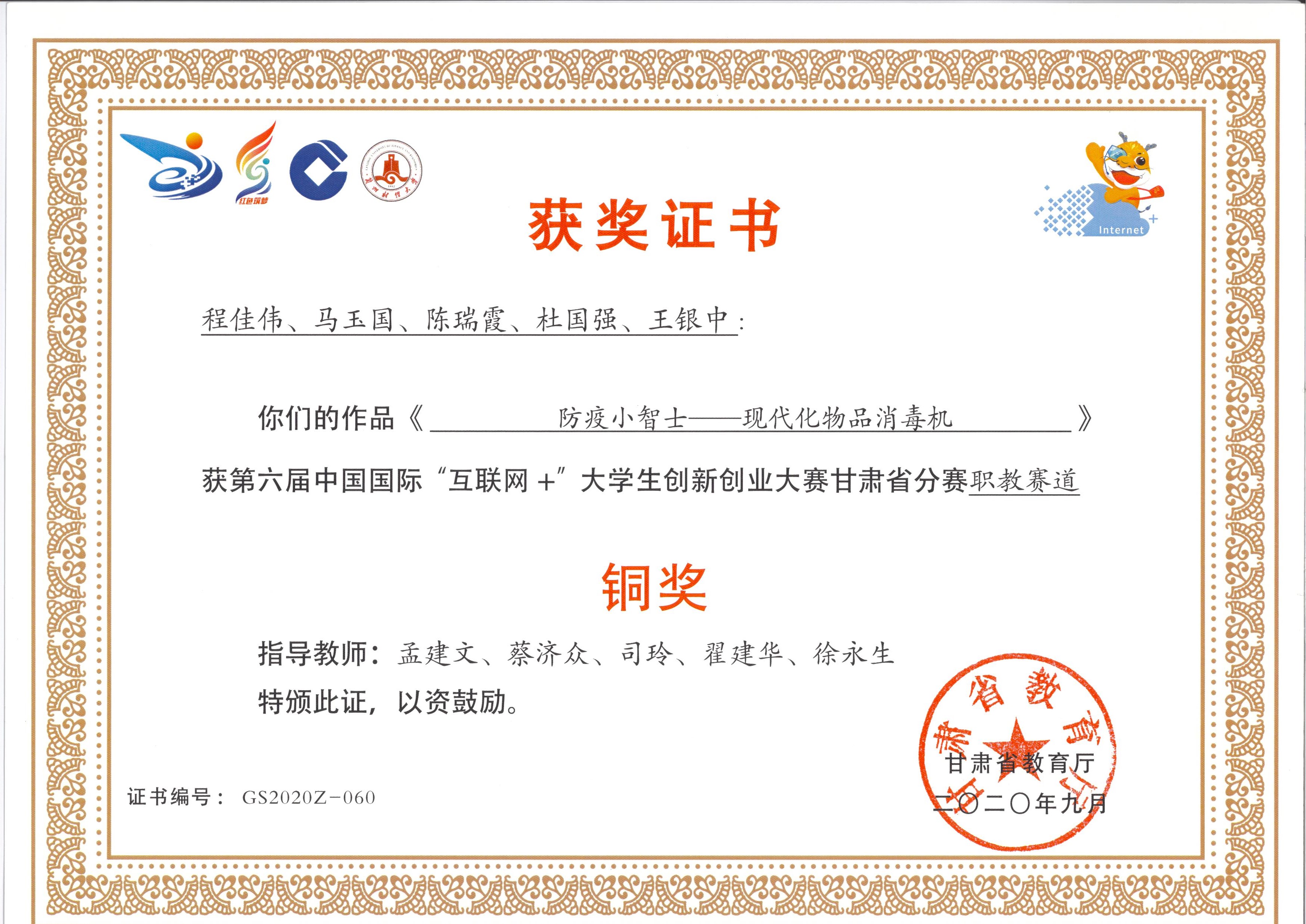第六屆中國國際“互聯(lián)網(wǎng)+”大學(xué)生創(chuàng)新創(chuàng)業(yè)大賽甘肅省分賽職教賽道《防疫小智士—現(xiàn)代化物品消毒機(jī)》