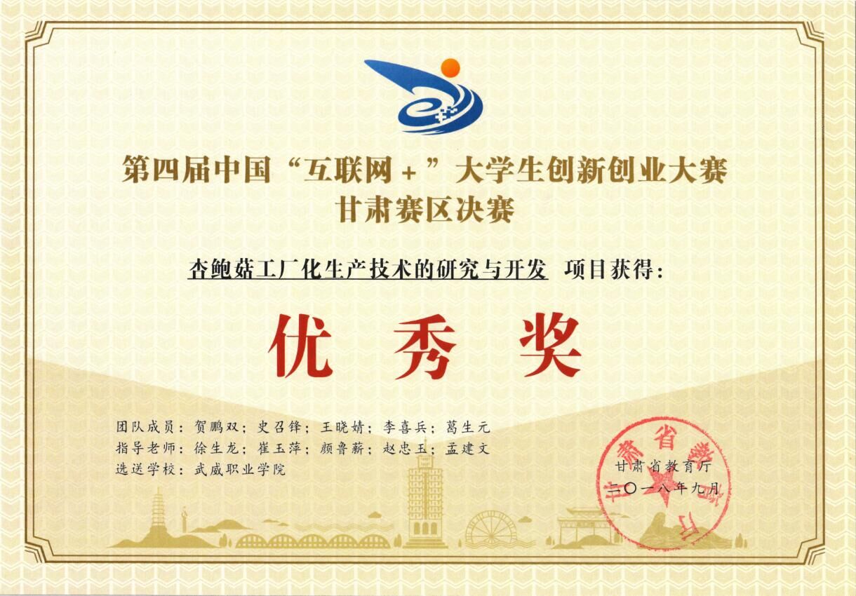 第四屆中國“互聯(lián)網(wǎng)+”大學(xué)生創(chuàng)新創(chuàng)業(yè)大賽甘肅賽區(qū)決賽《杏鮑菇工廠化生產(chǎn)技術(shù)的研究與開發(fā)》