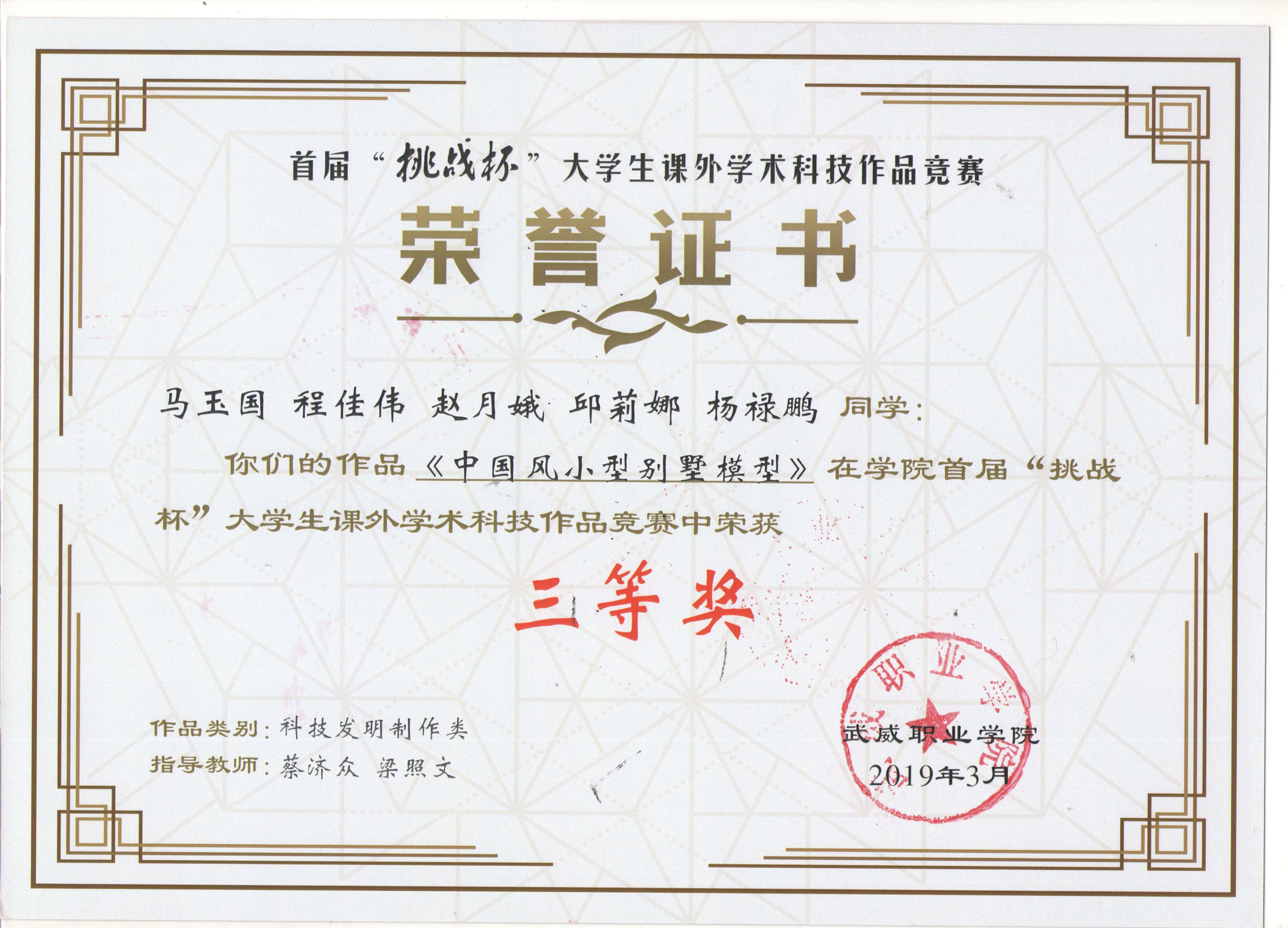 武威職業(yè)學(xué)院首屆“挑戰(zhàn)杯”大學(xué)生課外學(xué)術(shù)科技作品《中國風(fēng)小型別墅模型》
