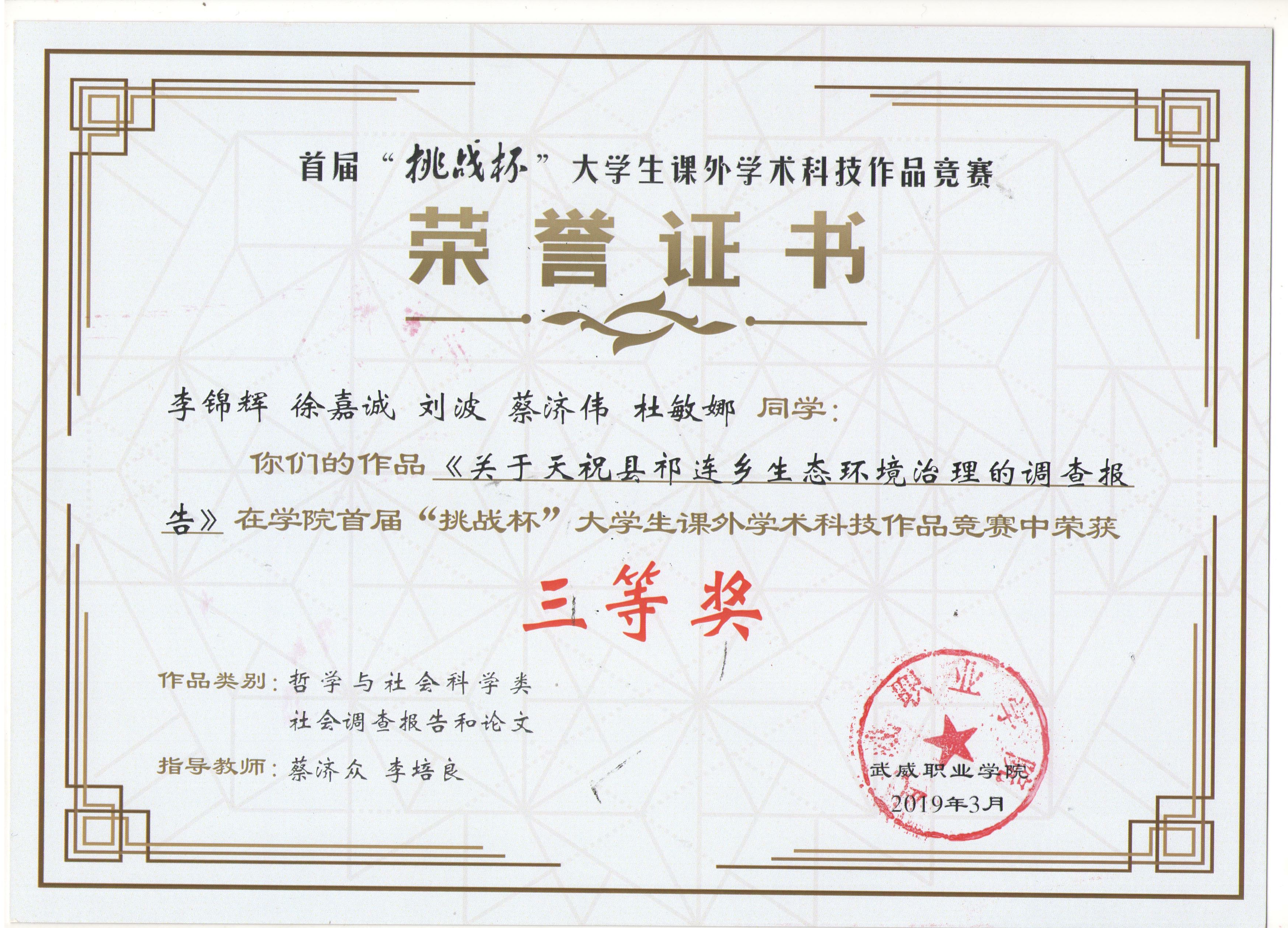 武威職業(yè)學(xué)院首屆“挑戰(zhàn)杯”大學(xué)生課外學(xué)術(shù)科技作品《關(guān)于天??h祁連山生態(tài)環(huán)境治理的調(diào)查報告》