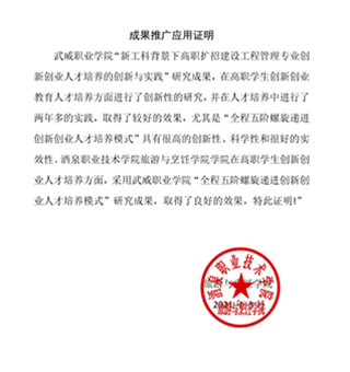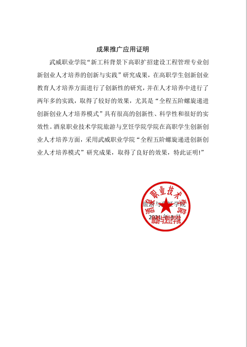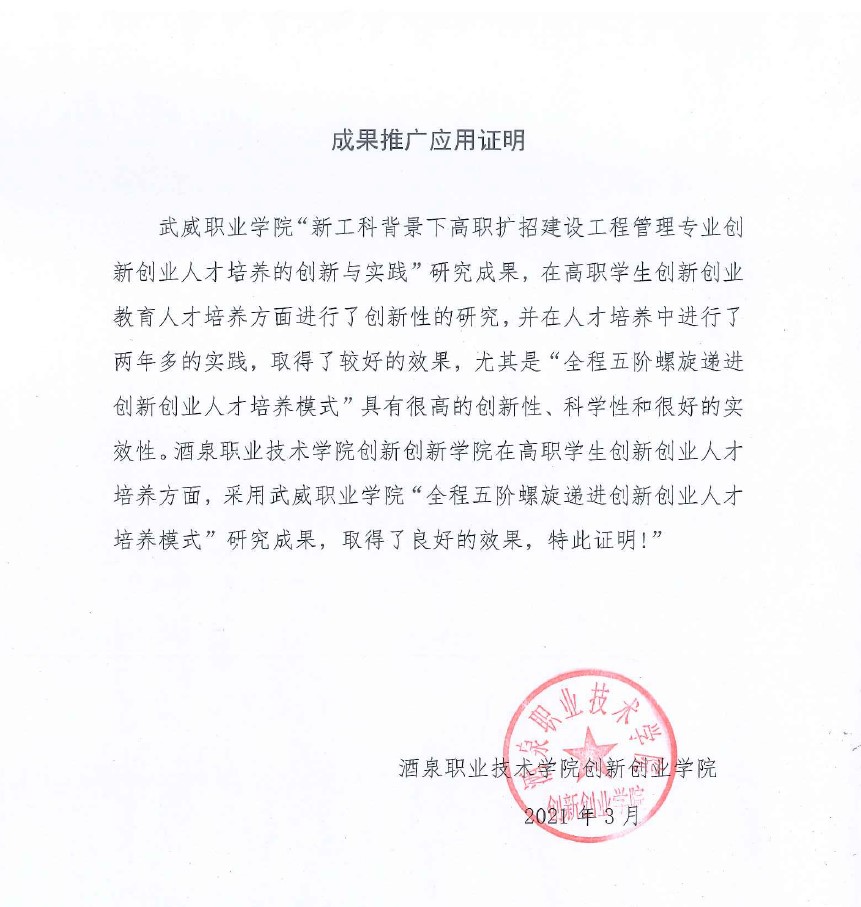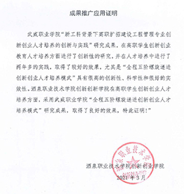 成果推廣應用證明(酒泉職業(yè)技術(shù)學院創(chuàng)新創(chuàng)業(yè)學院)