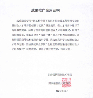 成果推廣應用證明(武威職業(yè)學院建筑工程系)