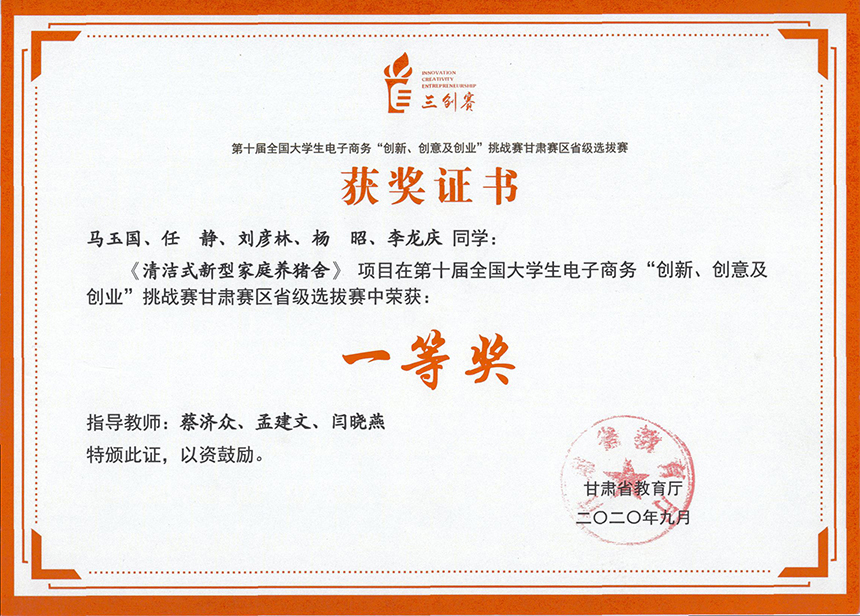 第十屆全國(guó)大學(xué)生電子商務(wù)“創(chuàng)新、創(chuàng)意及創(chuàng)業(yè)挑戰(zhàn)賽甘肅省賽區(qū)省級(jí)選拔賽《清潔式新型家庭養(yǎng)豬舍》